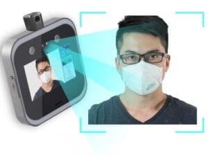 Where entry requirement requests the wearing of a facial covering such as a mask, the DS1 comes with the option of mask conformity recognition. If a mask is detected access is granted and if no mask is detected then access will be denied and a visual and/or audio warning is provided.