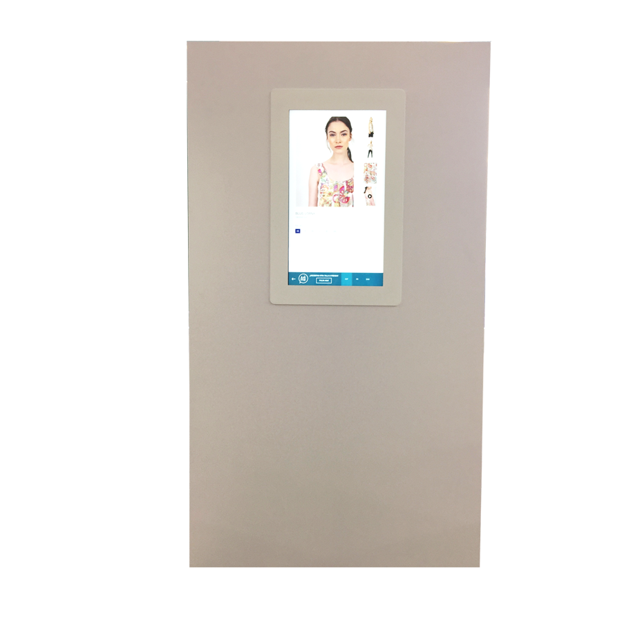 The AdvanFitting-300 unit is installed on the way of the fitting room. The system is recessed into the wall, so all the electronics are hidden and the only thing visible to the shopped is the screen and optionally the frame.