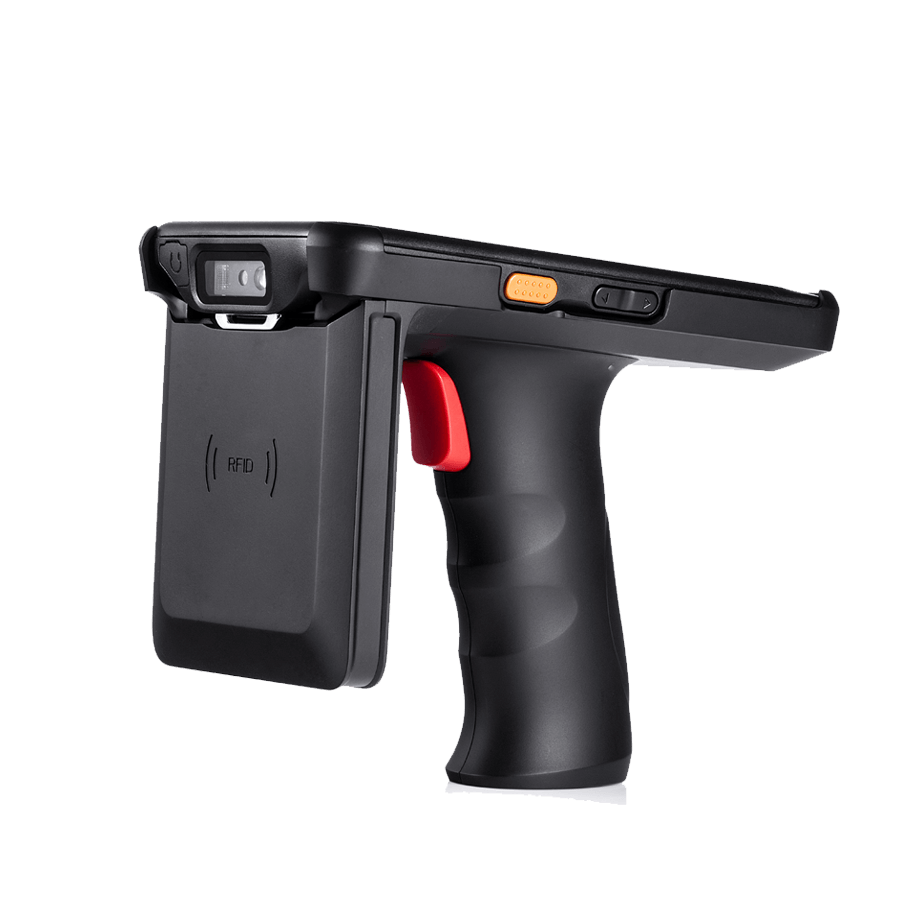 The UHF component has been added into an ergonomically designed pistol grip, well balanced with a built-in trigger for ease of use. Designed to allow the operating terminal to easily clip in and out.