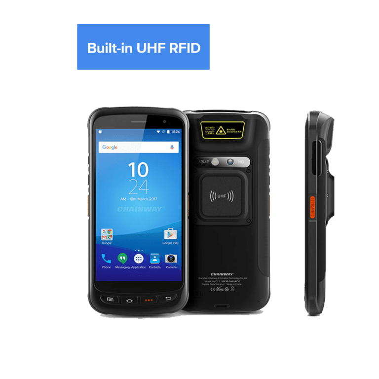 The Chainway C71 is an Android portable terminal with an RFID reader. The newly-upgrade of Octa-Core CPU brings the overall performance improvement that enables high-speed and stable possessing. Integrated with superb RFID performance that allows read distance of 3m, it is lightweight, supports optional barcode scanning and iris recognition. The RFID reader will meet the needs in retail, logistics, warehousing, healthcare, finance, transportation, etc.